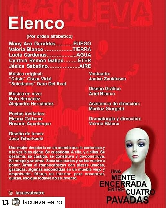 El espectáculo se presenta todos los viernes de noviembre a las 22.30 en el Centro Cultural El Deseo en Saavedra 569. Cuenta con música en vivo y la actuación de Many Aro Geraldes, Valeria Blanco, Lucía Cárdenas, Cynthia Remón Galipó y Jesica Sabatino.
