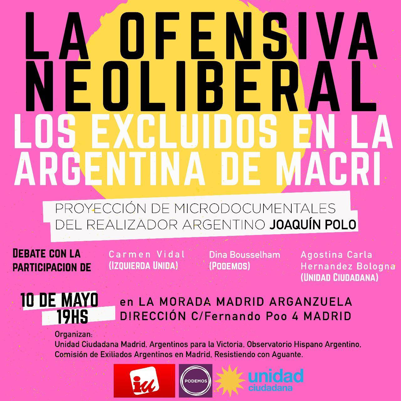Los trabajos se expondrán el 10 de mayo en la Morada Madrid Arganzuela de Madrid. Luego de la proyección habrá una charla de la que participarán referentes de Izquierda Unida y Podemos de España y de Unidad Ciudadana de Argentina.