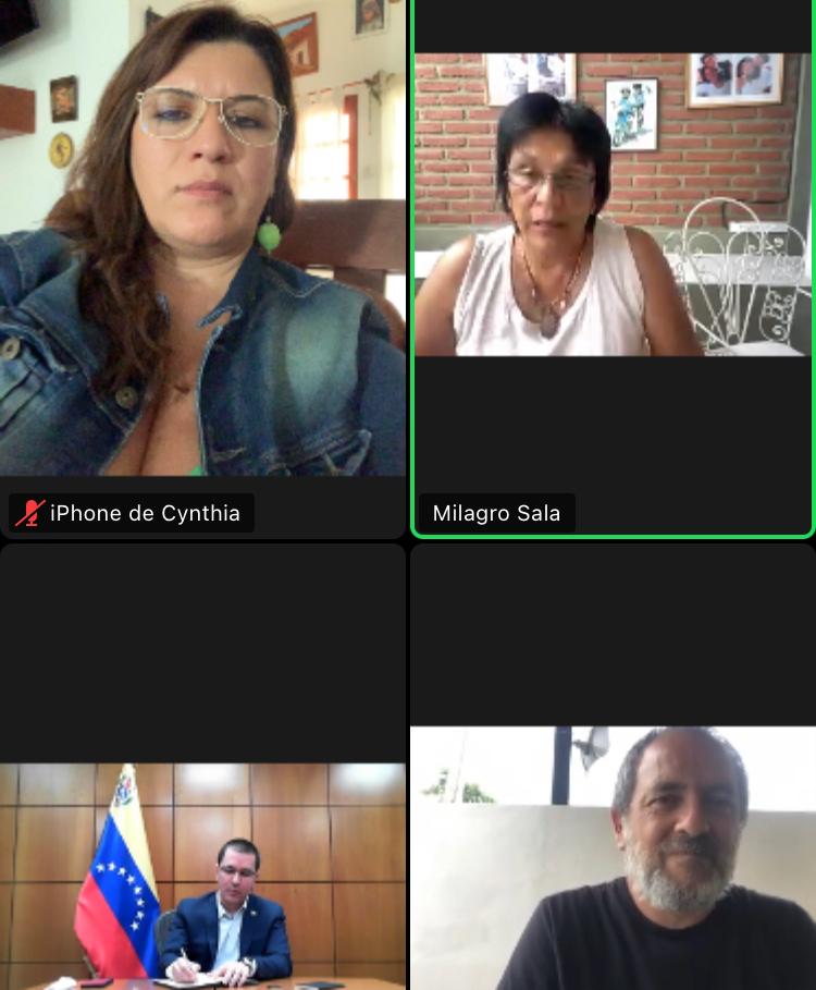Además de las movilizaciones, Milagro Sala contó con el apoyo por videollamada con diferentes personalidades políticas. Uno de sus encuentros fue con el canciller de Venezuela, Jorge Arreaza.