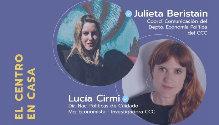 El Centro Cultural de la Cooperación y el Ciclo El Centro en casa, repone este viernes 15 de enero el diálogo que, en julio pasado, mantuvieron vía Instagram live Julieta Beristain (Coord.Comunicación del Depto. Economía Política del CCC) y Lucia Cirmi (Dir. Nac. Politicas de Cuidado – Mg. Economista – Investigadora CCC) sobre el teletrabajo y las políticas de cuidado.